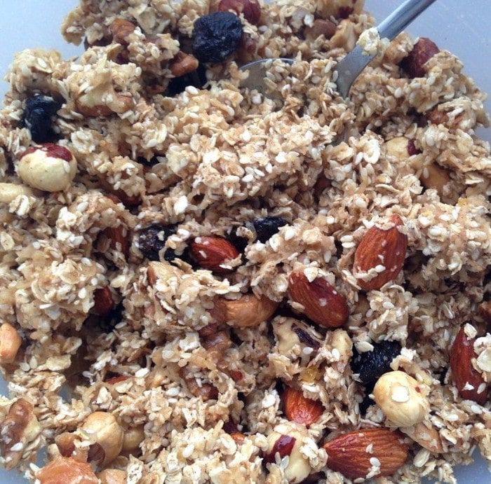 3. Добавить их к овсяным хлопьям и перемешать. Яблочная гранола