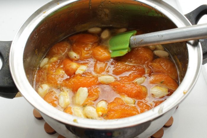 3. Добавить очищенный миндаль.  Абрикосовое варенье с миндалём и тимьяном