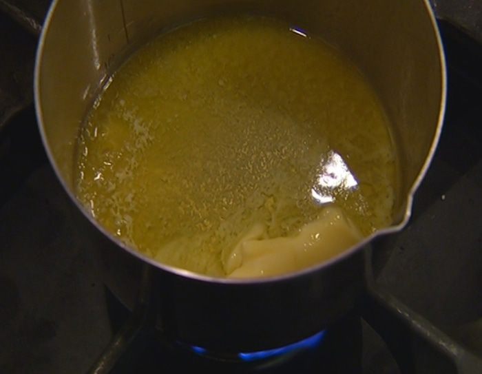 2. Сливочное масло растопить в небольшой кастрюле на медленном огне. Яйца бенедикт