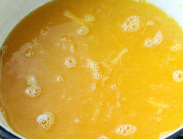 7. Для пропитки коржей смешать апельсиновый сок с сахаром, варить 10 мин., добавить ликер. Апельсиновый торт