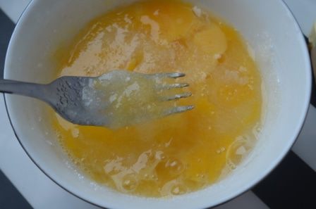 5. Вилкой яйца взбить с сахаром, молоком и растопленным масло. Ароматные кексы с красным виноградом и дор блю