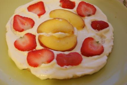 6. Ягоды и фрукты порезать дольками (у меня клубника и нектарин). Бисквитный фруктовый торт со сливочным кремом к празднику "День семьи, любви и верности"