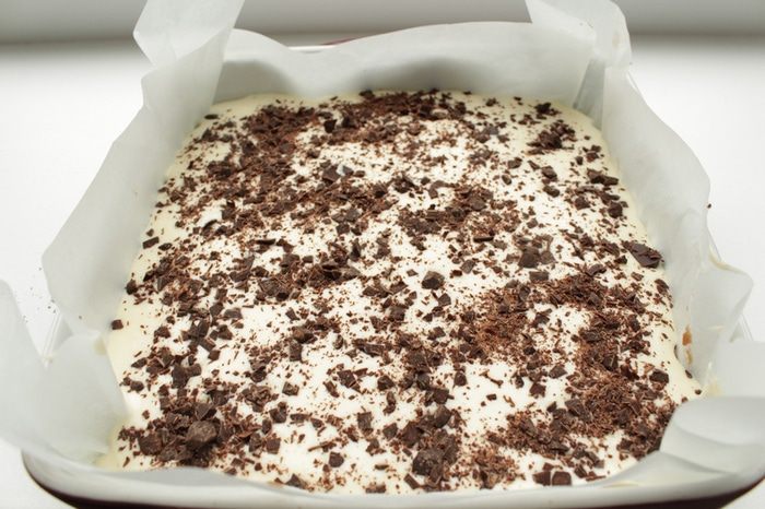 8. Сверху сливочный слой и посыпать тертым шоколадом. Брусничный пирог
