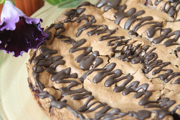 13. По желанию украсить верх пирога шоколадным узором... Черемуховый пирог со сливами