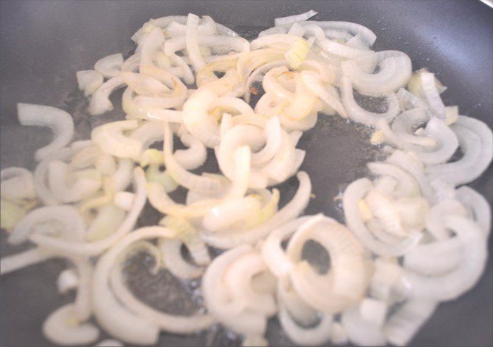 2. Репчатый лук режим полукольцами и обжариваем до карамельного цвета. Домашний сырный пирог с луком