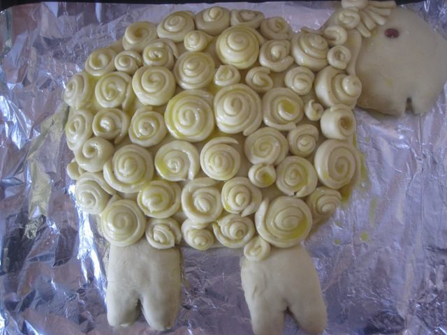 12. Теперь собираем овечку, аккуратно и точно прикладывая голову и ножки))) Дрожжевой пирог "Гламурная овечка"
