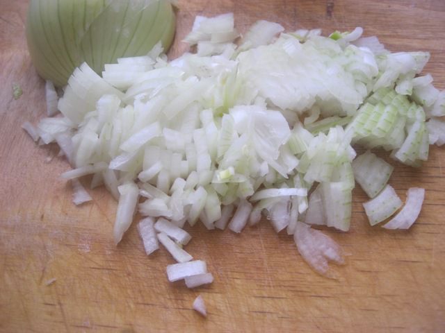 Лук мелко нарезать.