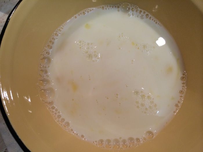 2. Смешать жидкие ингредиенты: яйца и молоко. Французский деревенский пирог с медом