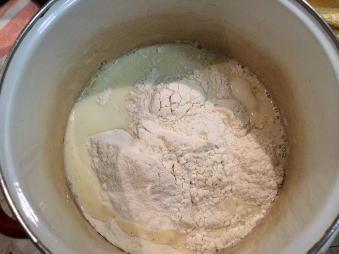 3. Влить жидкую смесь в мучную, хорошо перемешать деревянной ложкой. Французский деревенский пирог с медом