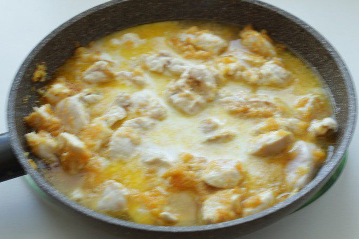 6. Снять с плиты. Подавать с рисом или спагетти. Фрикасе из курицы
