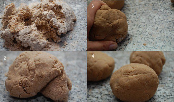 2. На присыпанную мукой поверхность выкладываем содержимое миски и энергично вымешиваем. Я разделила тесто на три части, так проще. Готовое тесто завернуть в пищевую пленку и оставить на 1 час при комнатной температуре. Гречневая паста с печенью и карамелизованным луком