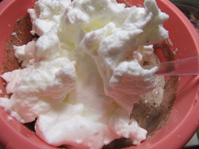 6. Прибавьте белки, взбитые в крепкую массу. Гречневый торт с брусничным компотом
