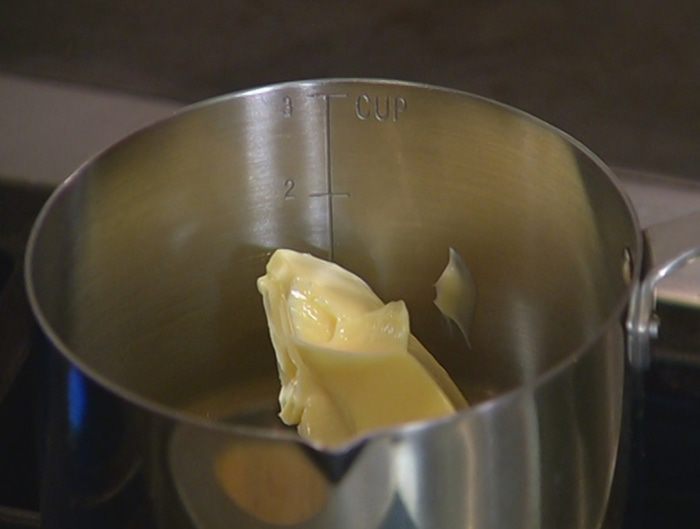 8. Оставшееся сливочное масло растопить в небольшой кастрюле. Грибы под хрустящим фило