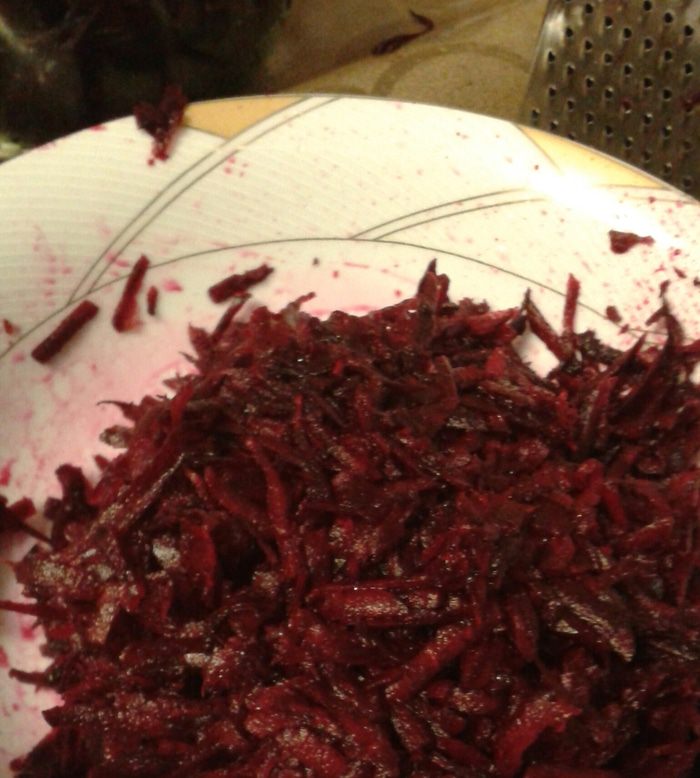 2. 1 килограмм свеклы потереть на крупной терке, Холодный суп на свекольном квасе