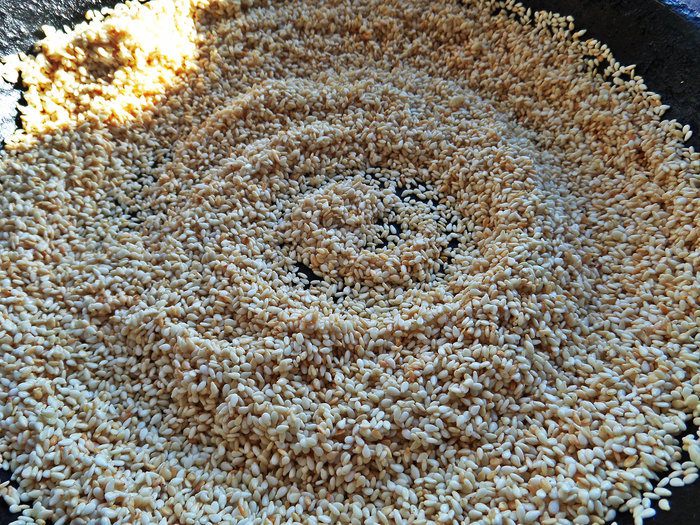 5. Кунжут лучше обжарить на сухой сковороде, постоянно помешивая! Хрустящее кунжутное печенье