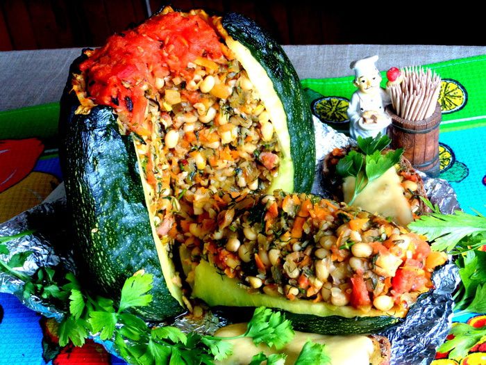 14. Фасоль была готовая отваренная уже. Кабачковая фаршированная "бомба"