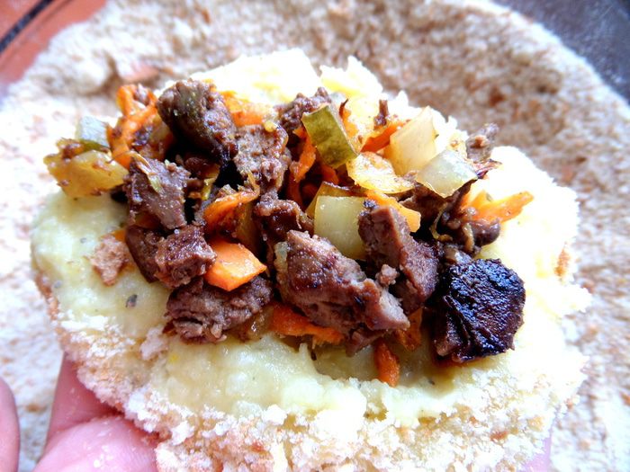 17. В середину кладём начинку. Картофельные зразы с печенью