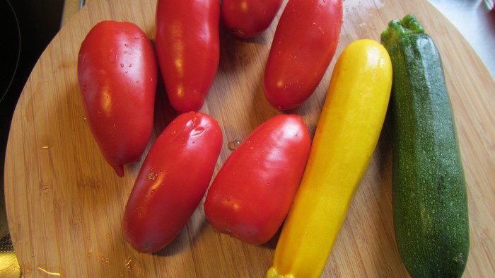 3. В это время займемся начинкой. У меня были вот такие овощи. Киш с цукини и помидорами
