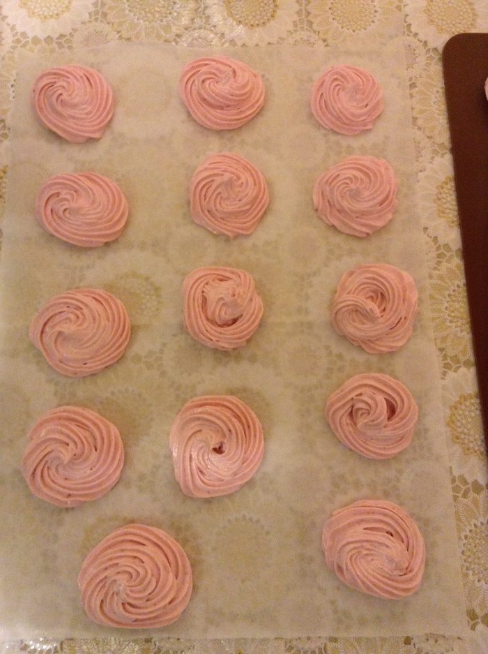 6. Осадить насадкой "звезда" (закрытая или открытая) на пергамент, оставить подсохнуть на ночь. Клюквенный зефир