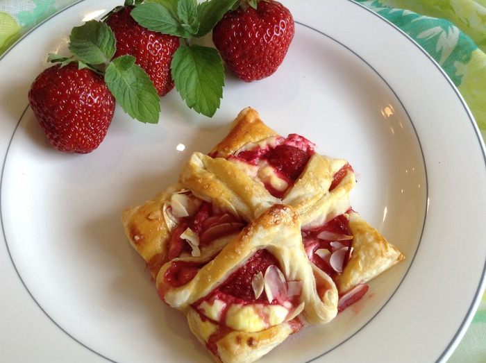 2. Тесто разрезать на 12 квадратов. Конвертики с клубникой