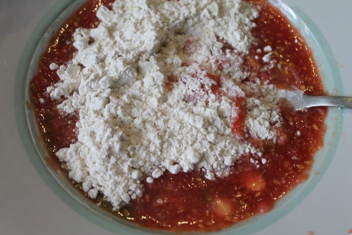 6. В помидоры добавьте муку и перемешайте. Кюфтета яхния