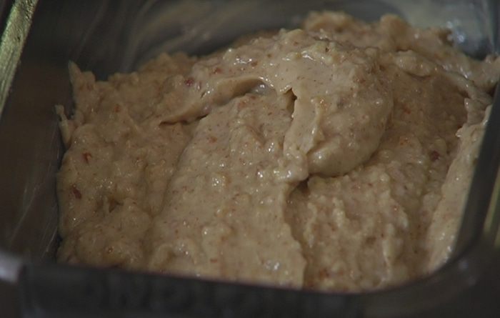 6. Из лимона выжать сок, влить в блендер к пекану с сахаром и взбить еще немного. Лимонно-имбирный кекс с орехами пекан