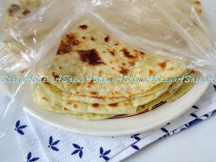 8. Пока готовится начинка, лепешки необходимо прикрыть пленкой или полотенцем. Локше