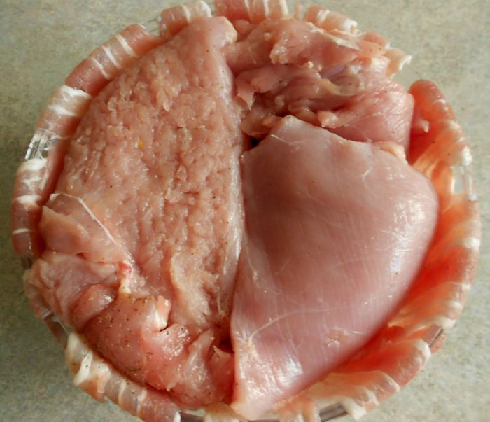 14. В это время выложить оба филе по стенкам формы узкими частями к центру. Мясная "бомба" из индейки