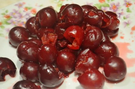 7. Вишню помыть, косточки убрать (я это делаю или булавкой или вилкой), ягоду лучше еще порезать на кусочки. Мороженое "Черный лес"