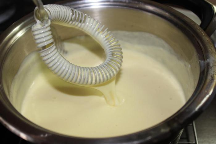 5. Поставим смесь на небольшой огонь и, помешивая, варим до загустения. Следите, чтобы крем не подгорел. Мороженое со вкусом яблочного штруделя