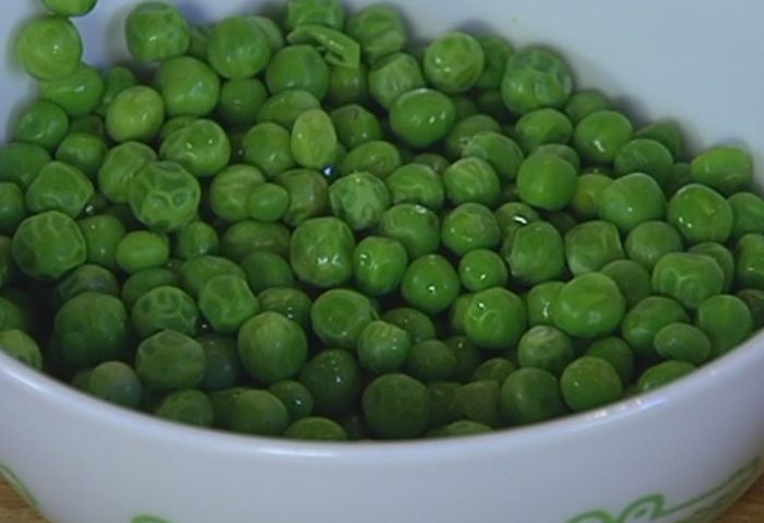 1. Зеленый горошек предварительно разморозить. Омлет-торт с нутом и зеленым горошком