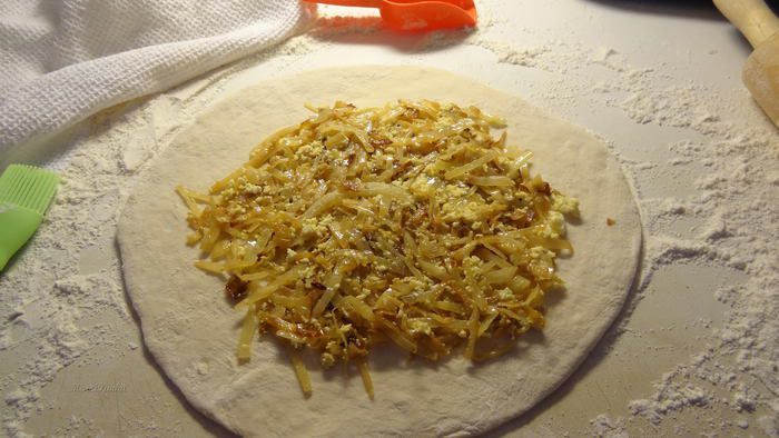 20. Повторить все тоже самое с тремя оставшимися кусочками теста, используя 2 вида начинки. У нас получится 2 пирога с одной начинкой и 2 - с другой. Осетинские пироги с двумя видами начинки
