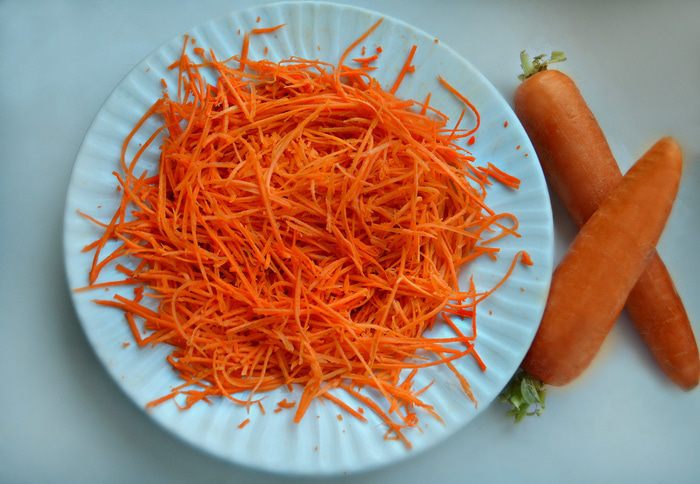 3. Морковь промойте, почистите и тонко натрите с помощью терки для корейской моркови. Овощной салат с киноа