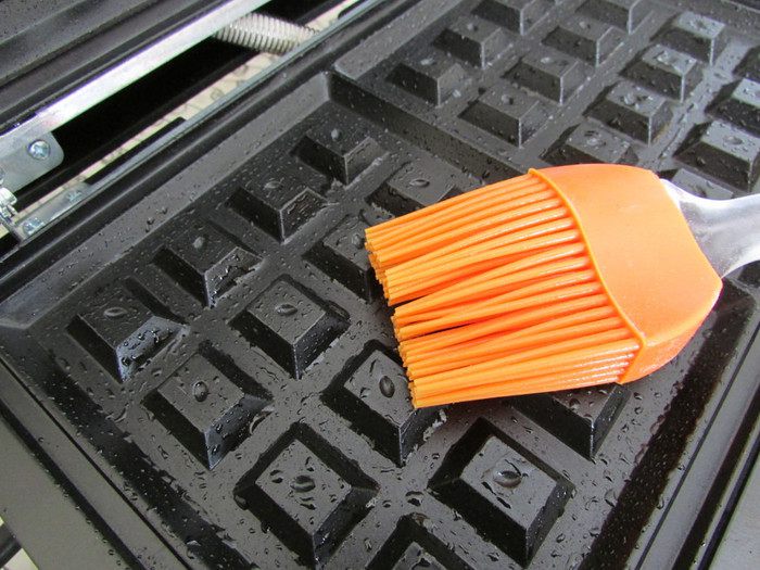 8. Электровафельницу смазать растительным маслом. Разогреть. Тесто выложить ложкой на нижнюю нагревательную поверхность и выпекать до золотистого цвета, примерно 8 минут. Овсяные вафли