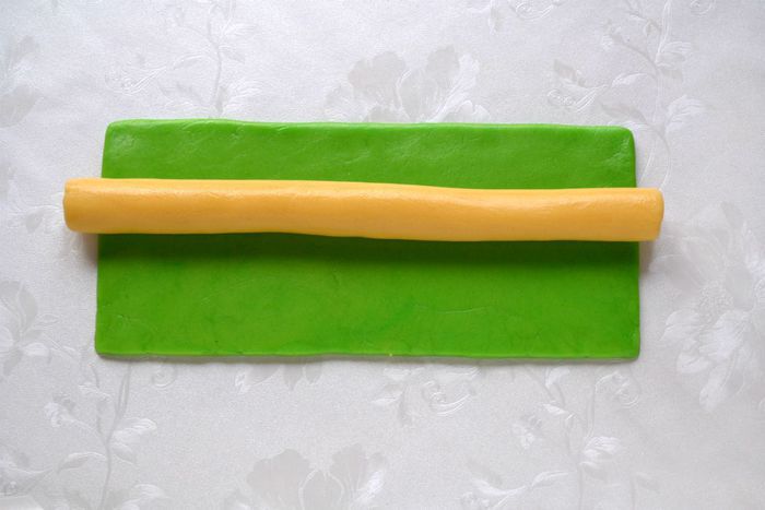 7. Раскатать зеленое тесто в прямоугольник примерно 25 см на 7 см. Печенье "Киви"