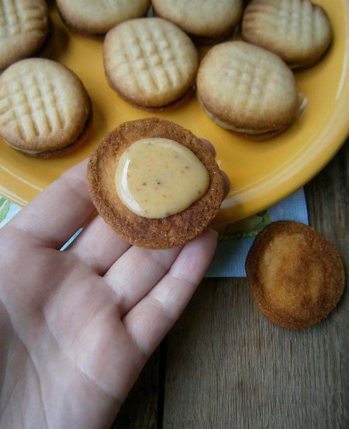 Я очень люблю это печенье,оно такое хрустящее и приятно пахнет сливочным маслом, но не жирное совсем!  Но пекла  всегда  обычное печенье,  без крема. Потом мне пришла идея соединить две "половинки". Я выбрала крем на основе сгущенного молока ( домашнее, сама делала...;)), апельсиновой карамели и семян аниса Получилось такое... Мммм  СУПЕР  вкусное печенье!  Готовится очень быстро, а съедается ещё быстрее! Короче - всем готовить!