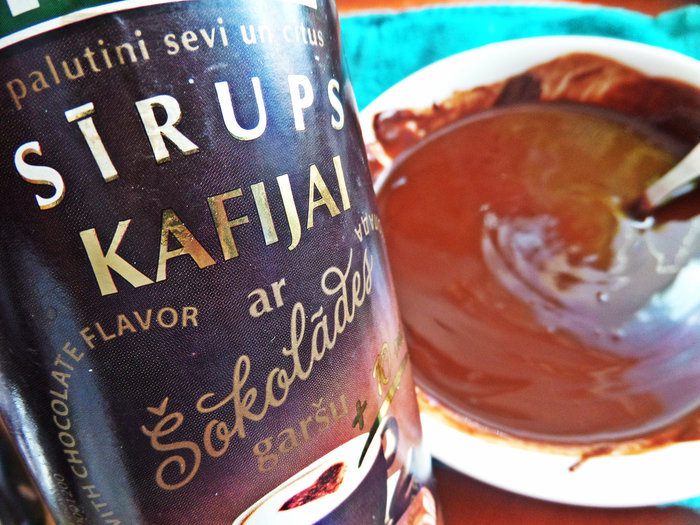 4. Вот такой сироп "для усиления вкуса кофе" решила добавить, частично вместо сахара, но и аромат свой тоже добавит. Печенье с шоколадом и клюквой "Чёрный лес"