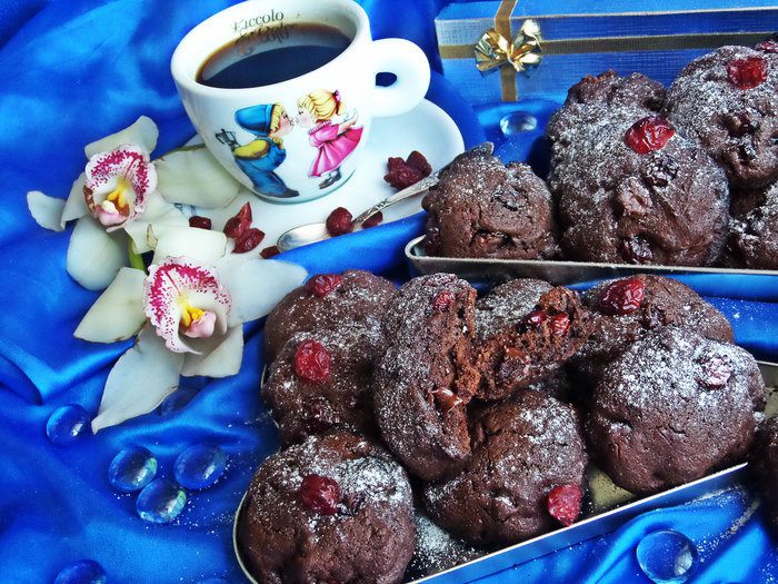 18. Вначале оно мягкое и пружинистое, но при остывании становится хрустящим. Печенье с шоколадом и клюквой "Чёрный лес"