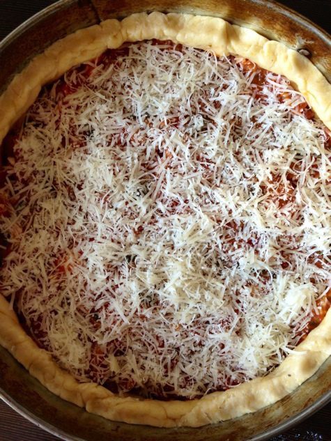 19. Поверх равномерно выкладываем томатный соус. Пицца по-чикагски в глубокой форме (Chicago-style deep-dish pizza)
