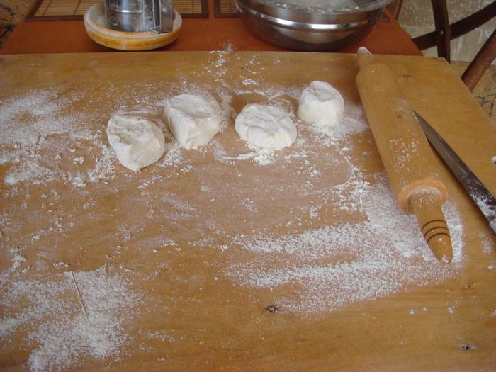 2. Тесто: вода+соль+масло подсолнечное 3ст.л. и добавляем просеянную муку, замешиваем тесто и оставляем на 30 мин. в мешочке отдыхать.