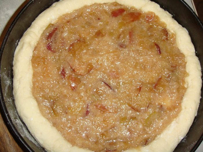 14. Укладывать «косички» на начинку по кругу. Пирог с яблоками в сливках