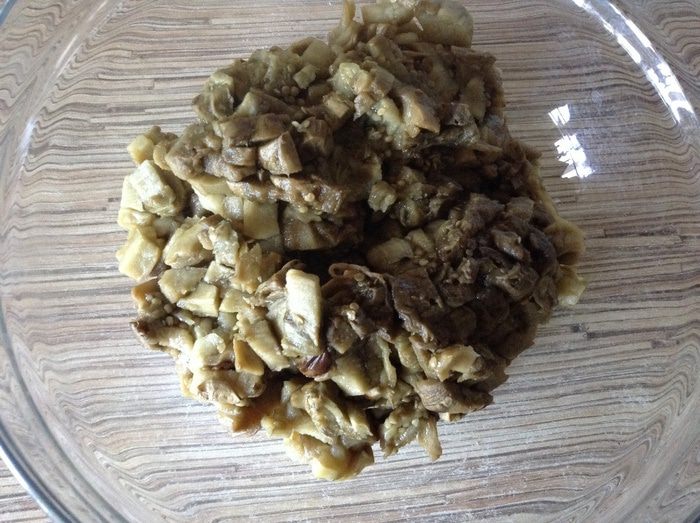 2. Остывшие баклажаны очистить от кожуры и мелко порубить. Пирог с баклажанами и адыгейским сыром