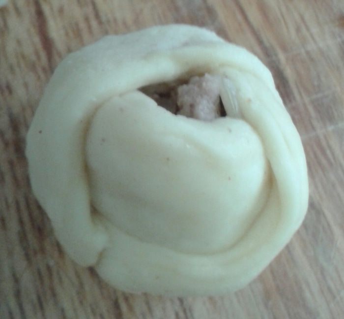 7. в серединку кладем начину. Пирог с мясом и рисом