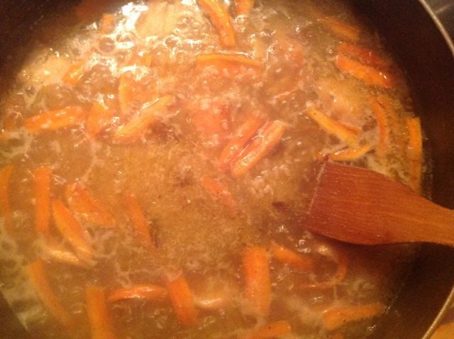 3. Когда морковь станет мягкой, вливаем воду. Рис с курицей и чечевицей