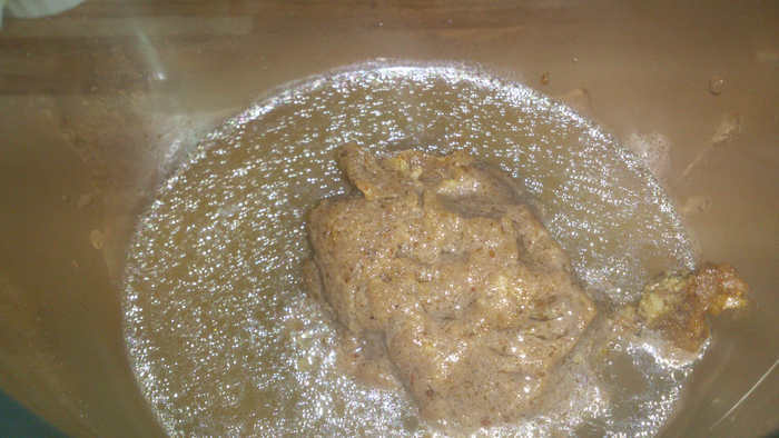 6. Жмых, оставшийся от выжимки масла, развести в крутом кипятке.