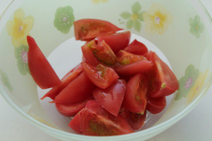 1. Помидоры нарезать дольками. Салат из овощей с вялеными томатами