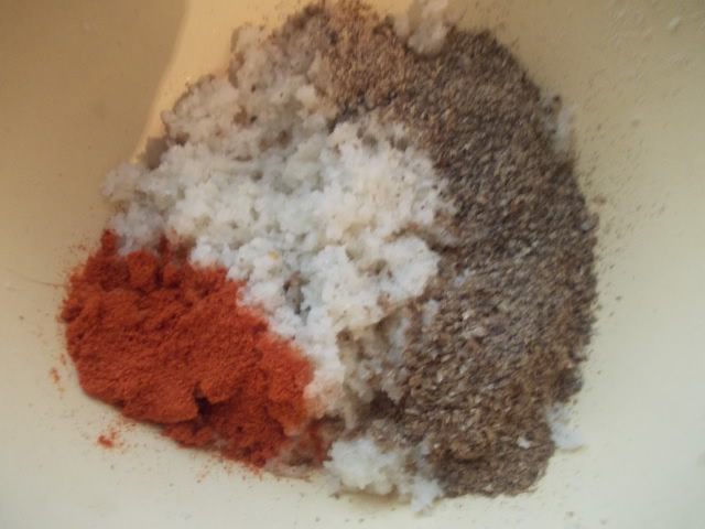 3. Добавить специи и соль,все тщательно перемешать. Сало соленое со специями и чесноком