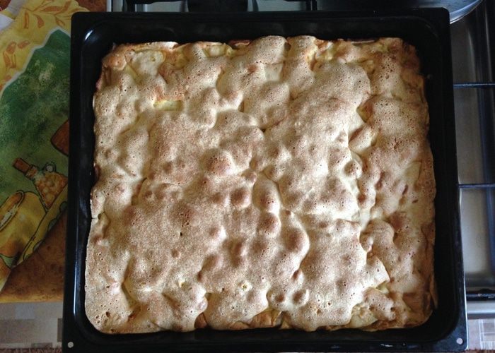 6. Тесто вылить на яблоки и отправить в, предварительно разогретую до 180 градусов, духовку и выпекать ~30 минут Шарлотка
