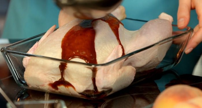 3. Курицу обмазать маринадом и убрать в холодильник на несколько часов. Slim курица с персиками