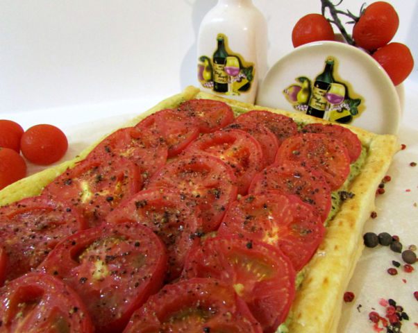 Изображение к рецепту Слоеный пирог с помидорами и базиликом